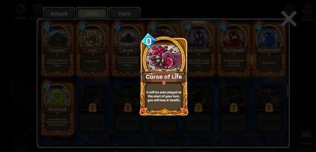 – Lose 15 health, target will gain 1 Curse at the end of every turn