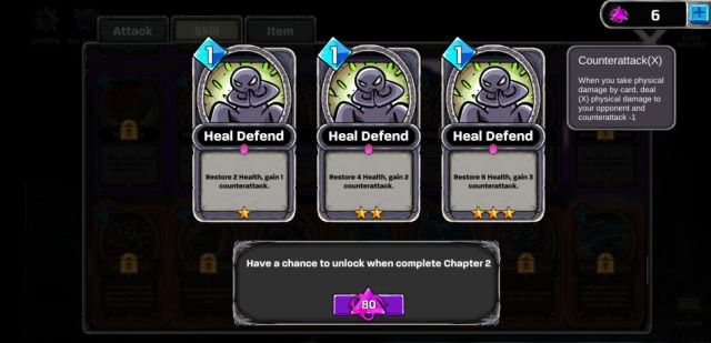 – Restore 2/4/6 Health, gain 1/2/3 counterattack