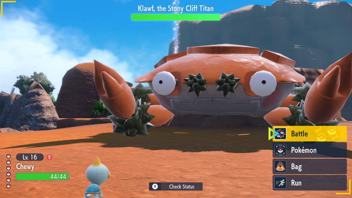 When you first encounter one, you’ll take it on solo, but once it gets low on HP, it’ll run away. You have to chase it down, at which point Arven usually shows up and joins you in battle to help you out.