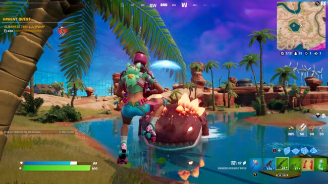 Butter Cake arrived on the island along with Tilted Towers on January 18, 2022. The giant dino-creature is roaming the world of Fortnite minding its own business, probably looking to munch on some Klomberries. Unlike sharks and wolves in Fortnite, Butter Cake is not looking for a fight and won’t attack first, but some players are wondering if it is possible to kill Butter Cake anyway.