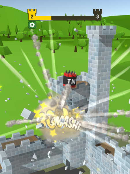 If a TNT block is hit hard enough, it will explode and severely damage all objects around it. These things are usually placed in spots where they can do some nice damage to the castle, so make sure to aim for them if you see them.