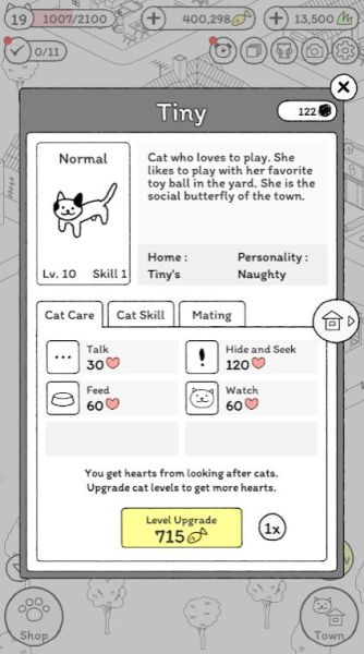 Just like every building can be upgraded, so can the cats! When you level them up, you get more hearts (equivalent of taps) when caring for them. This is especially good if you don’t really want to tap a lot and rather just look out for the cats.
