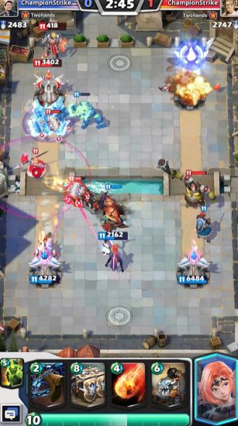If you have some strong heroes, then it’s good to focus on deploying more at once and focusing them all (together with your champion) on the enemy towers.