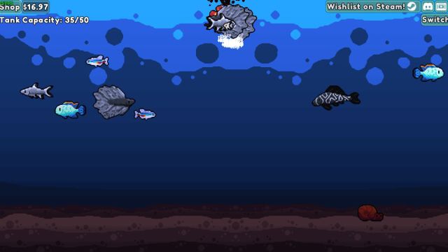 The gameplay loop in Chillquarium involves buying a fish pack to get a bunch of baby fish, hopefully snagging a rare one in the process, then feeding them until they get enough XP to mature into adults. To speed up the process, we can utilize auto-clicking.