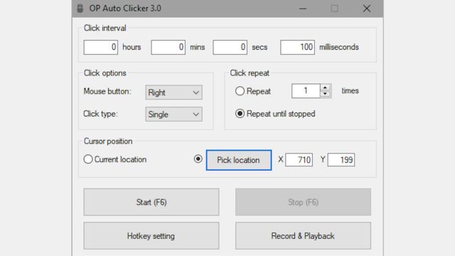 Go to the OP Auto Clicker website, and download the version that matches your operation system. Run OP Auto Clicker, and the configuration window should pop up. You can edit all the settings here.