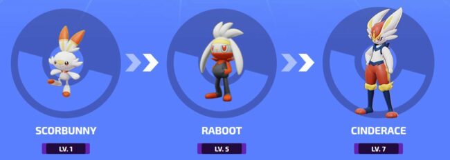 - Evolution – Scorbunny –> Raboot (LVL 5) –> Cinderace (LVL 7)