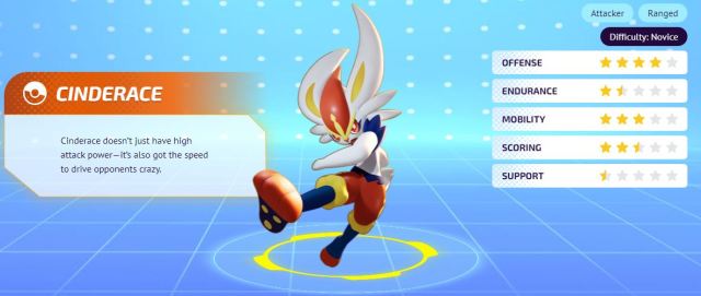 Cinderace is one of the many ranged-attack-type Pokémon in Pokémon Unite. While he lacks high attack power, he offers a high movement speed best for poking opponents from all sides.