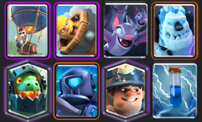 This deck features Lightning and Zap spells along with Baby Dragons and Bats for Golem’s protection. While Golem is tanking, players can send their Mini Pekka to destroy enemy towers in no time.