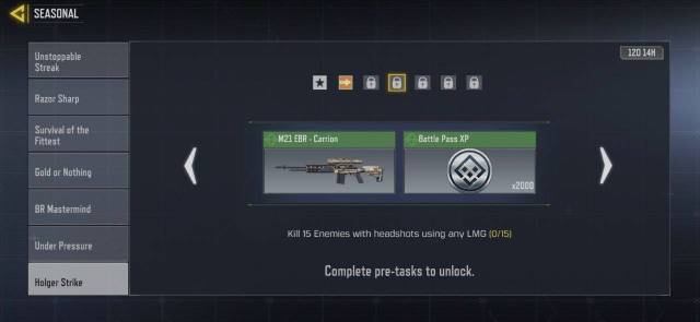 - Reward: M21 EBR – Carrion and Battle Pass XP x2000
