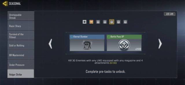 - Objective: Kill 30 enemies with any LMG equipped with any magazine and 4 attachments.