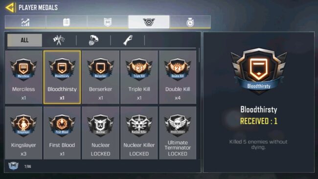 Call of Duty: Mobile features a wide variety of medals that players obtain by completing certain missions in the game. As of writing, the multiplayer title has over 86 medals, and Bloodthirsty Medal is one of them.