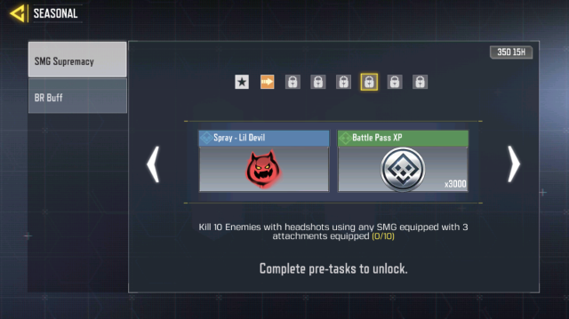SMG Supremacy is a seven-part seasonal challenge that allows unlocking HS0405’s exclusive Stone Mason finish. Besides this, players can snag other items like weapon XP card, Credit Points, Battle Pass XP along the way.