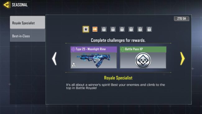 The seven-part seasonal challenge, Royale Specialist, began on August 26 and will last in the Call of Duty: Mobile till September 23.