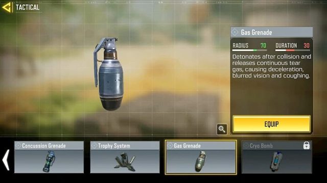 • Gas Grenade: Detonates after collision and releases continuous tear gas, causing deceleration blurred vision and coughing.