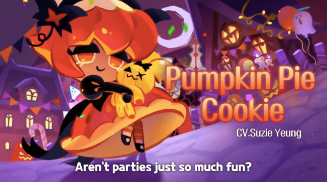The newest Cookie coming to the game in the Halloween Event will be Pumpkin Pie Cookie! Judging from the trailer, Pumpkin Pie Cookie will be a summoner-type fighter whose skill brings forth a huge creature to attack the opponents. She hangs out behind her teammates, shooting little projectiles before throwing out a big pumpkin to act like what looks to be tank-like support for her teammates. She seems to deal a lot of damage with her regular and special skill attacks, so she will be a great asset to any team lineup.