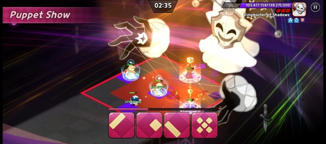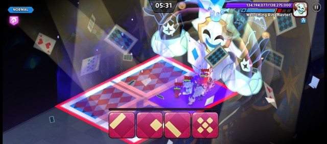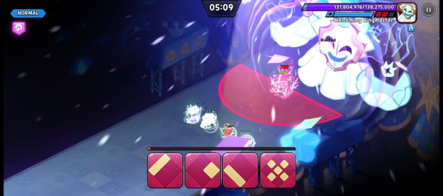 The Ringmaster of Shadows is a boss that’s vulnerable to Light, and all the cookies that hit multiple times, such as Creme Brulee Cookie or Clotted Cream Cookie.