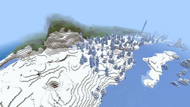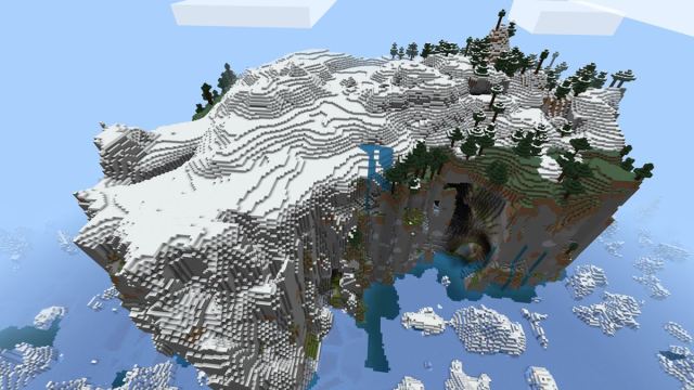 - 6967698017210692139: This seed generates a huge frozen mountain covered by snow with a few trees to get basic materials. This mountain, located on an isolated island, contains a massive cave. The island is surrounded by frozen water, making survival a significant challenge.