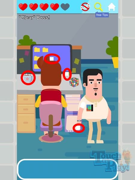 Remember that you have the tips option to use in-game as well in case you don’t want the full solution to each level… but if you do, that is exactly what we have for you today, so let’s get started with the Crazy Tricks – Annoyed Boss stage walkthrough.