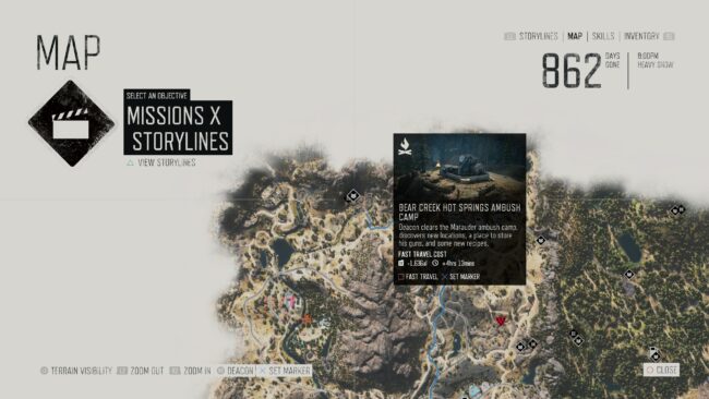 Clearing the camp will reduce the Marauder encounters in the surrounding area. Other than that, it also unlocks upgrades and rewards resources and other things. So, if you are near the Bear Creek Hot Springs Camp, why not clear the camp and make Deacon “more prepared” for facing hordes.