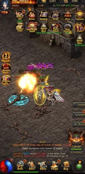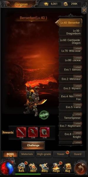 There are several dungeons which you can complete every single day and those dungeons will give you quite a lot of rewards. You can find the Dungeons in the right side of the screen, above the Boss challenge button.