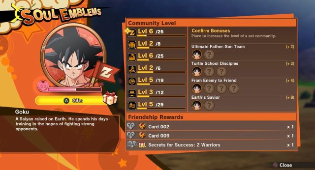 Dragon Ball Z: Kakarot features a few different gameplay mechanics that allow players to customize their characters and improve their combat performance. One of these mechanics, the Community Board mechanics, are powered by the Soul Emblems, unique items representing characters that must be placed on a board to unlock all sorts of bonuses.