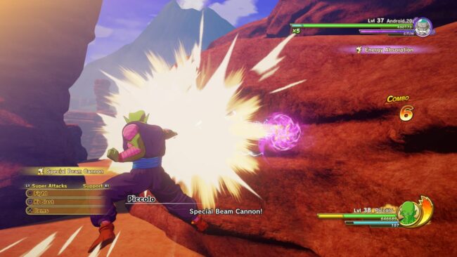 Android 20 is a very unique boss as it is capable of restoring his health using two special abilities – Absorb and Energy Drain. The former allows him to absorb any Ki-based attacks, including long-range special attacks, and turn them into health, so avoid attacking him when he is in this state and use this downtime to restore your own Ki or enter Surge Mode. The latter, however, is considerably more annoying to deal with, as it is a short-range attack preceded by charging that has good tracking capabilities and is difficult to dodge. Try to get as much distance as you can from Android 20 to outrange him and make him miss.