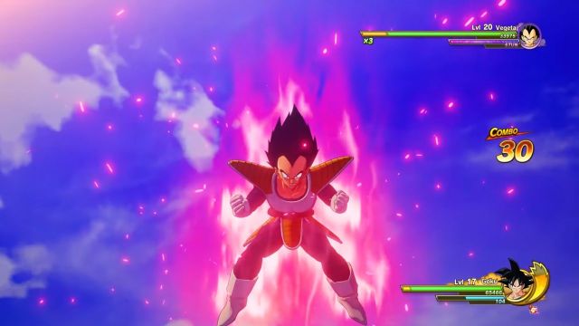 Vegeta is fought during the Saiyan Saga three times. Two of these times he will be in his regular form, while the remaining time you will fight him in his Great Ape form. The two regular form battles play out pretty much the same way, only that you will be controlling different characters: Goku and Gohan.