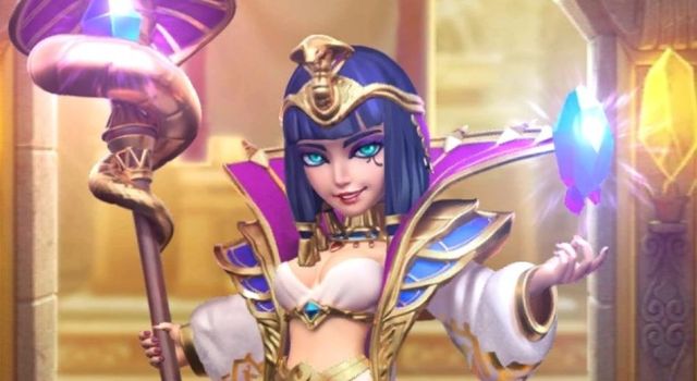 – If you like damage over time, she is your girl – she can inflict Poison on the enemies, which deals damage continuously, so she is a good fighter! She is also good for increasing the Mages’ Physical Defense, as well as boosting the Research Speed and Gold Production.