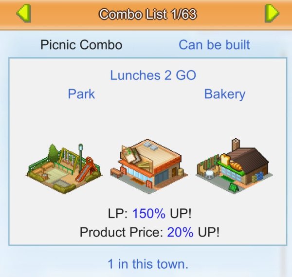 However, the biggest problem with the Dream Town Story combos is that they’re not all known from the beginning and you have to find them through trial and error or unlock them as you progress through the ranks. But since there’s such a huge amount of buildings available in the game and endless possibilities (plus limited numbers of building moves per day), it’s better to check out a list of all the combos in the game.
