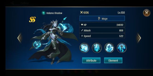 This hero is a powerful AoE beast who also does lots of damage. With the Ice skills, the enemies have a chance to freeze and this helps a LOT in the battles. Kalama Shadow can also be evolved from S tier into SS tier, having her basic stats doubled.