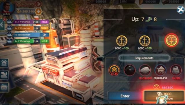 This works very good, because it will add to your overall Power, which you should always be looking to increase one way or another. I suggest that you always go to the “Upgrade” option right after you build something and upgrade that facility to the maximum level possible.