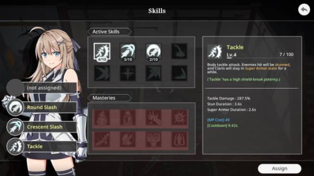 This goes double during boss fights. Bosses always have shields, another mechanic explained to you during the tutorial. All kinds of attacks will reduce the shield bar, but certain skills like Claris’ Tackle are highly effective for breaking shields. Aim to break the boss’ shields and then unleash all of your powerful skills!
