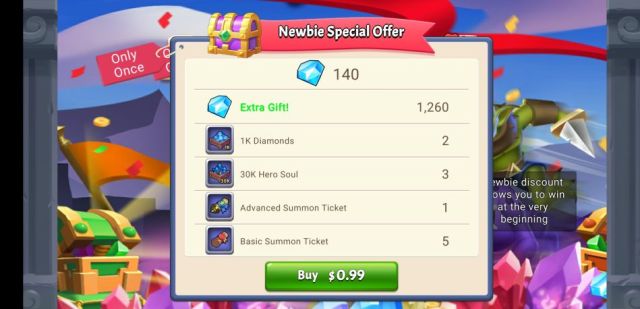 If you want more Diamonds, then the Newbie Special Offer is worth it, because it is a boost that will help you quite a lot, from the beginning of the game all through to getting you to end-game.