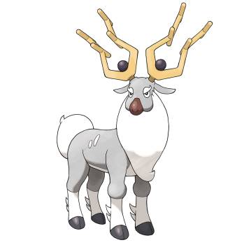 The first new Pokémon is Wyrdeer, a new evolution of Stantler. Wyrdeer is a dual-type normal and psychic Pokémon. It mainly lives near the cold mountains of the Hisui region, and its fur is sought after for its warmth and protection against the cold. The two black orbs in its antlers emit strong psychic waves, allowing Wyrdeer to map out its surrounding area and any potential threats.