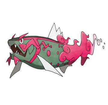 The second Pokémon is Basculegion, a rather intimidating large fish Pokémon. Basculegion is a dual-type water and ghost Pokémon, and is the new evolved form of Basculin. Basculin of the Hisui region travel upstream as the seasons change, but unfortunately not all of them make it. When a Basculin is possessed by a fallen member of its school, it will evolve into Basculegion.