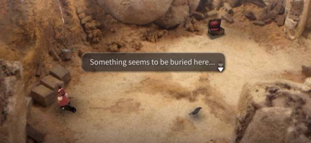 The first thing you’ll need to do is head to Mountain Path Connecting to En. Head up into the ruins, and you should see some rocks sparkling on the left side of the screen. Examine it to find Piranhara Bones.