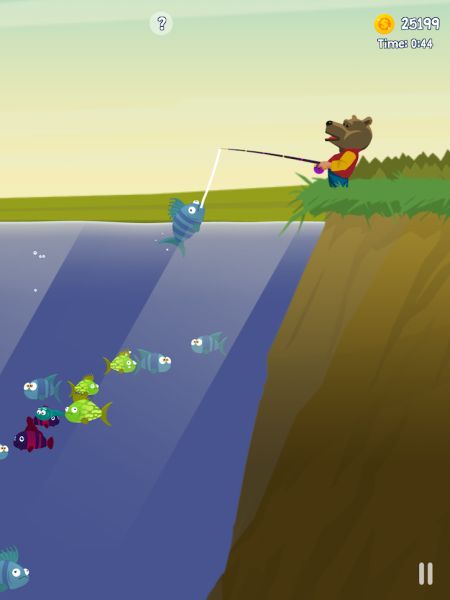 An important element here is that any fish that you capture gives you some extra seconds, based on their weight: so the larger the fish, the more you can keep doing this before the time runs out.