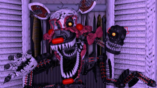 She may be dressed up like a ballerina, but she certainly doesn’t have the same grace (don’t say this to her face though, unless you’re a daredevil). Ballora, surprisingly is the one animatronic that looks very similar to humans, which makes her all the more unsettling. Watch out for the times when she splits her face apart; they’re, well, terrifying.