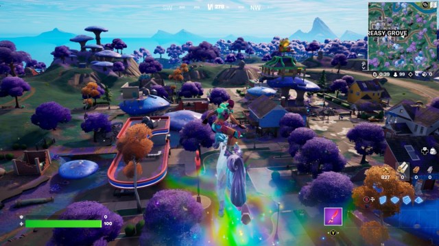 Greasy Grove has had a colourful makeover too and is full of mushrooms and purple trees, with the Taco restaurant found atop a giant mushroom! The old favourite, Tilted Towers, is once again under construction after the devastation caused in Chapter 3 Season 2. The statue near The Sanctuary has also had a colourful vibe upgrade.