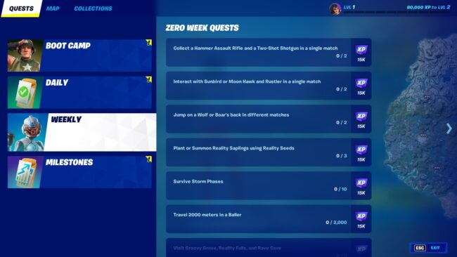 With the Zero Week, players get seven new Weekly quests and challenges that they can complete to obtain XP points to level up the battle pass.