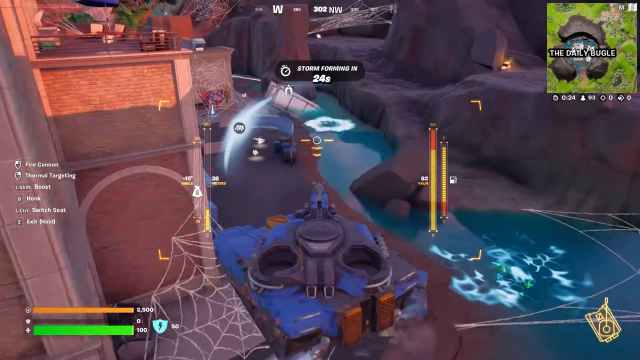 To get air time in a tank in Fortnite, we recommend landing at The Daily Bugle, a place located northeast of the map. Once you’ve managed to pick up the tank from the Daily Bugle, you will find a lot of Spider Man’s bouncy webs around the area. If you drive a tank over these bouncy webbings, you’ll be launched up in the air and the tank will get the air time.
