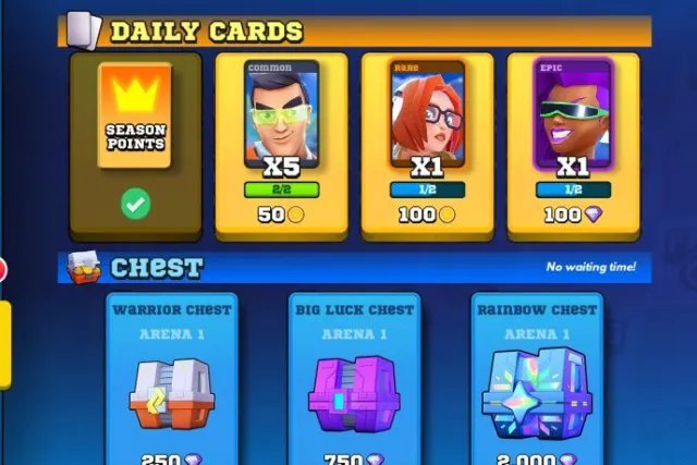 However, as the name suggests, you have to pay some sort of currency to get cards: you have three Daily Cards that are from a hero you already earn which can be bought with coins or diamonds, or you can buy chests directly with your diamonds.