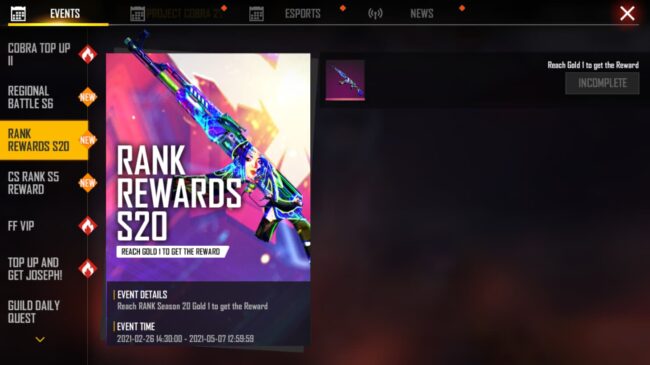 Luckily, the developers Garena frequently introduce new events and challenges through which one can acquire rare weapon skins as a reward. The company recently introduced a new event in Free Fire called Rank Rewards S20, which is rewarding players with a glorious AK47 skin.