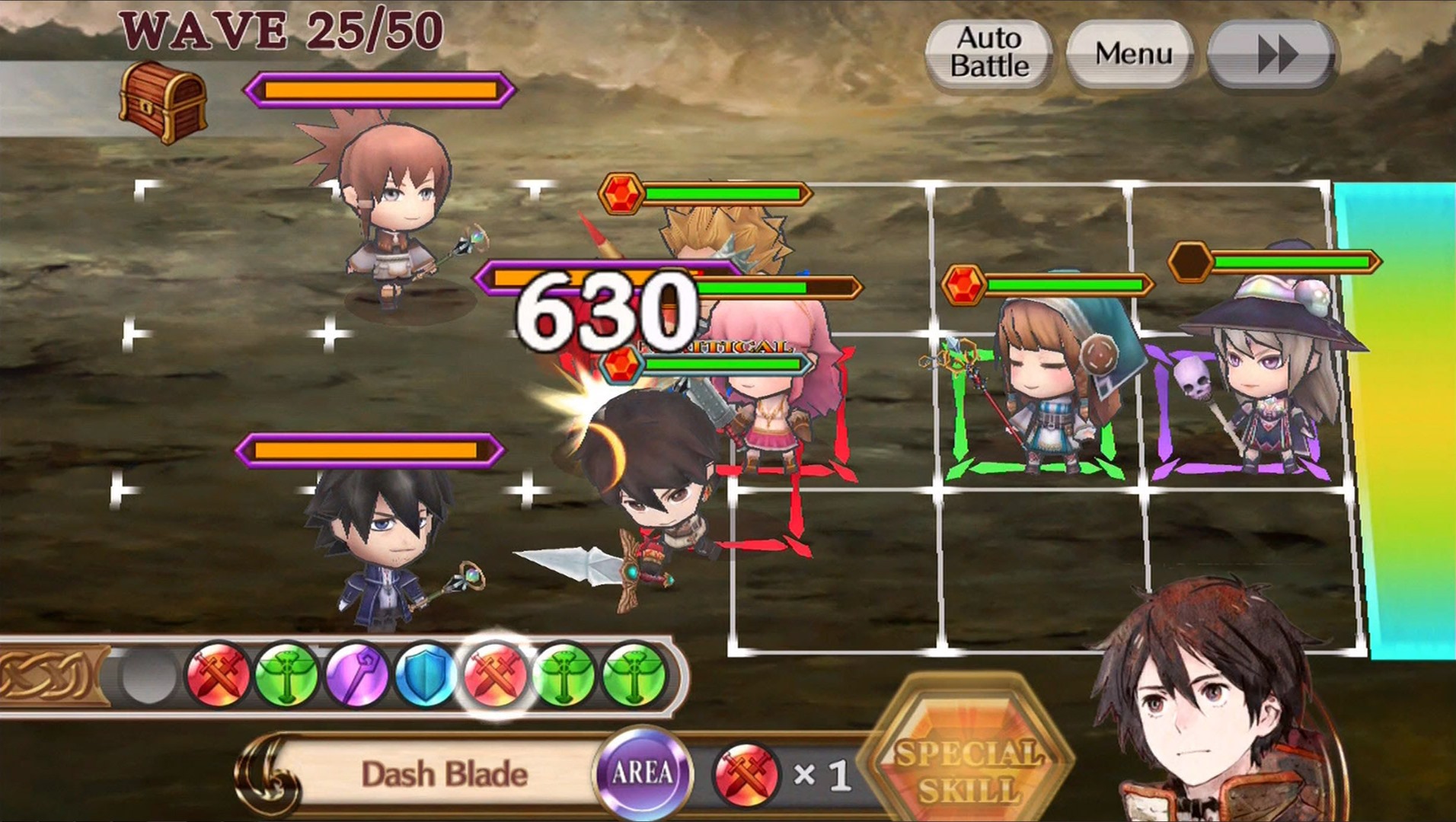 Gameplay wise, Chain Chronicle plays like very few other role playing game currently available on the App Store. Players will have to control their five units on a 3×3 grid, moving them so that they can get in the way of enemies, fight and defeat them. The game’s units belong to one of five classes – Soldier, Knight, Archer, Wizard and Cleric – each one with special skills that can also be chained together, becoming more devastating in the process.