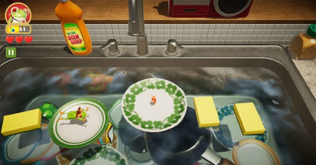 Much like the original Frogger, most of this game’s obstacles can be avoided by simply waiting until it is safe. When crossing traffic between the trains, wait for a clear path then move. If you are in the kitchen, wait until the stove is turned off to cross.