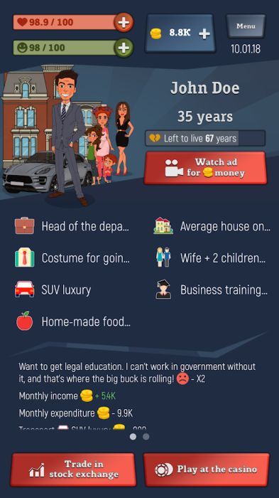 The same goes about relationships and everything in the game: remember that your goal is to become president, so do everything at the right time in order to have the money required to live a happy life.