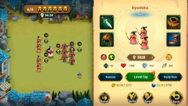 Winning stages will reward you with gold and Unit Experience, which can be spent to upgrade your units. They’ll also gain experience for simply fighting in battles, so make sure to always bring your favorites. Units can also be equipped with four types of gear to improve their stats.