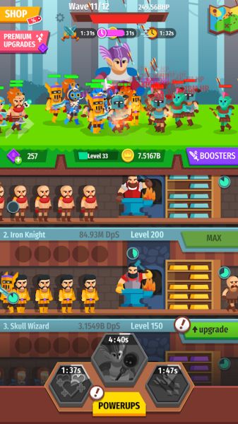 But powerups aside, most of your time will be spent training and sending heroes into battle. And for each hero that you have, there are 4 different areas that you can upgrade. Here’s how I recommend you to do it: