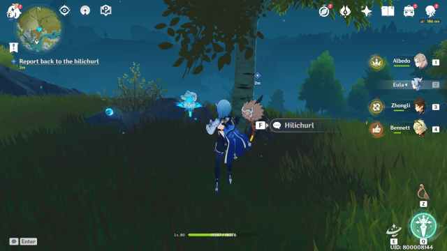 Now, it’s time to talk to the other Hilichurl to get clues on Unusual Hilichurl’s location and timing. Travel to the marked location and talk to the Hilichurl.
