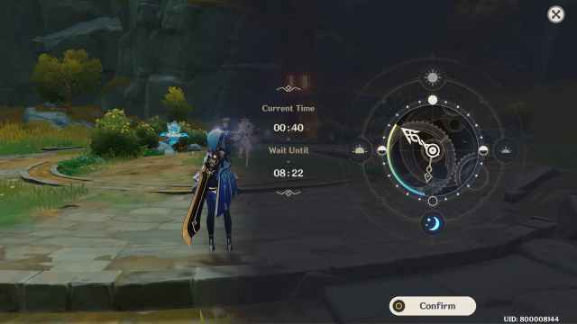 Open Paimon’s menu and set the time to 08:22 or anything that fits the above-mentioned criteria.